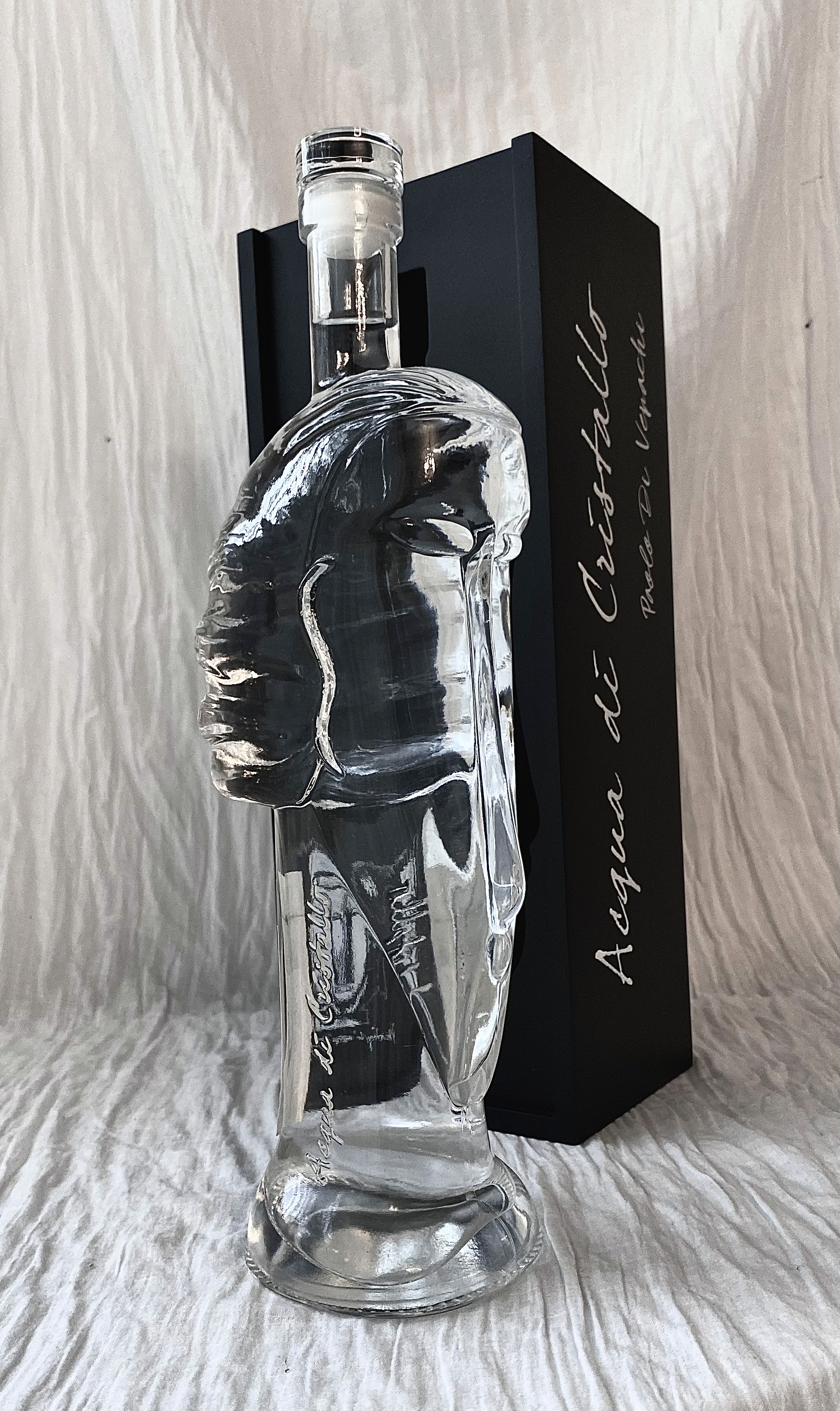 The bottle of Acqua di Cristallo, its inspired on the sculptural work Tete by the Grand Master Amedeo Modiglini, and