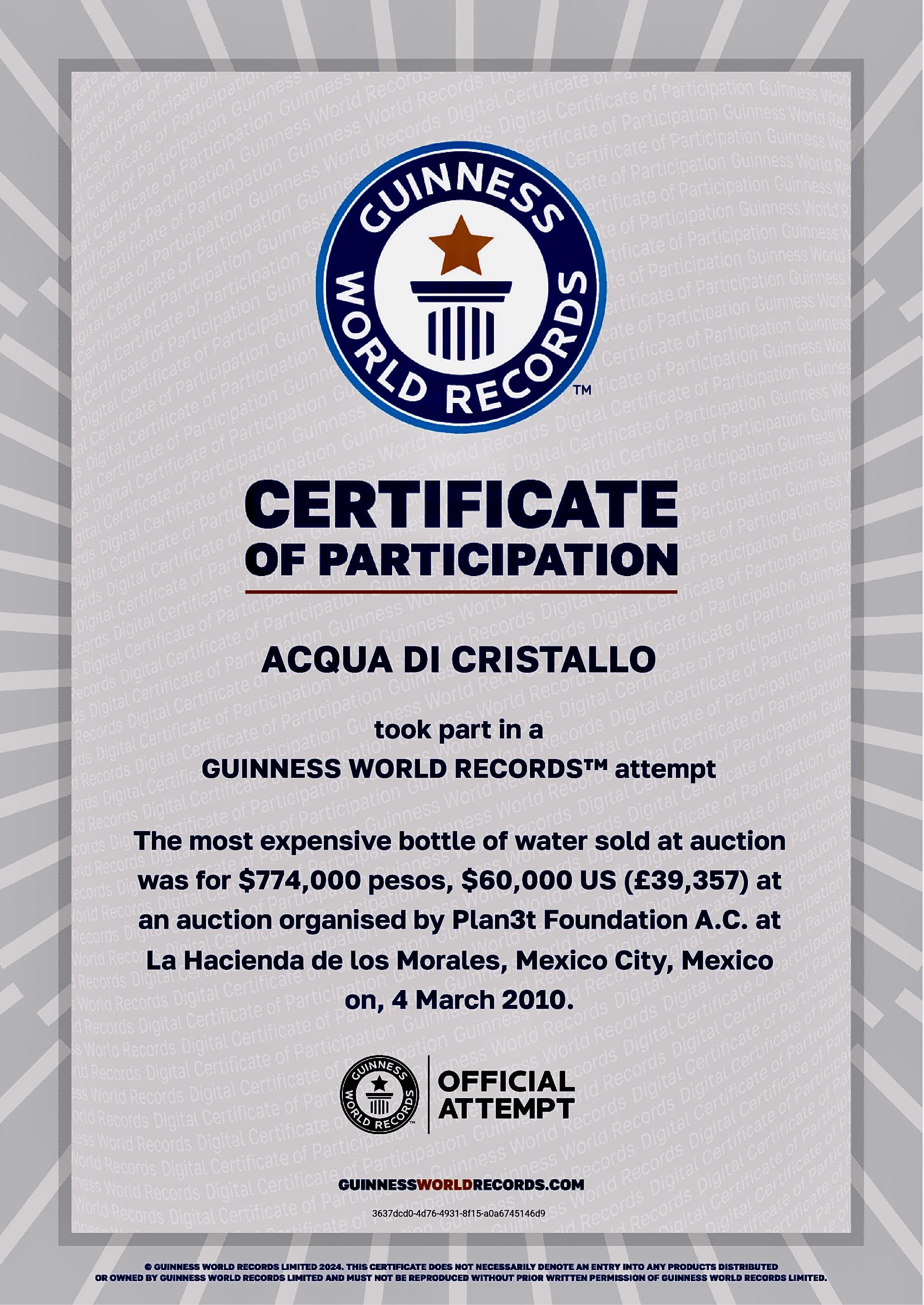 Acqua di Cristallo, t's recognized by the Guinness World Record as the most expensive bottle of water in the world.